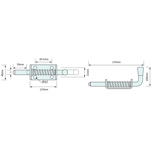 #4611 - SPRING BOLT ZINC PLATED 225MM 16MM PIN