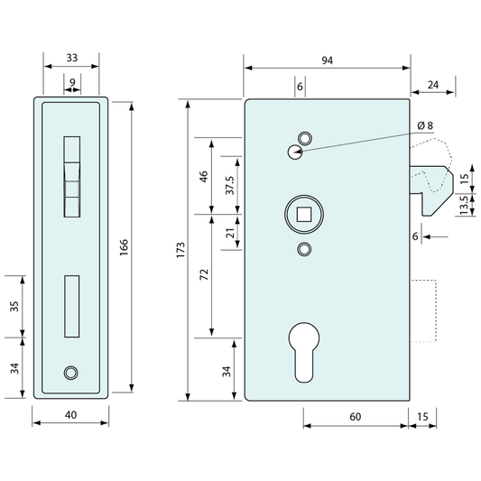 #4091 - EURO CYLINDER 5 PIN KEY AND TURN KNOB 36X10MM