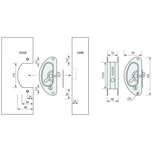 #4699 - INTERIOR SLIDING DOOR LOCK KEY LOCKING CHROME 155MM