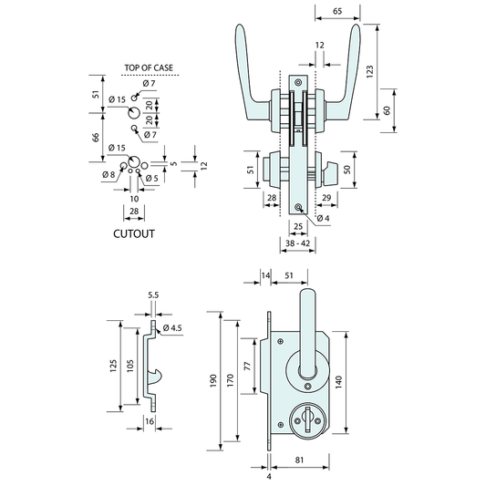#4889 - SLIDING DOOR LATCH KEY LOCKING STAINLESS STEEL 140MM