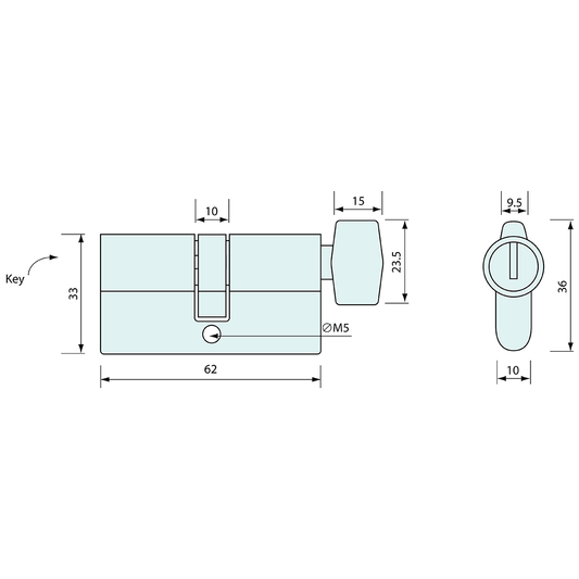 #4091 - EURO CYLINDER 5 PIN KEY AND TURN KNOB 36X10MM