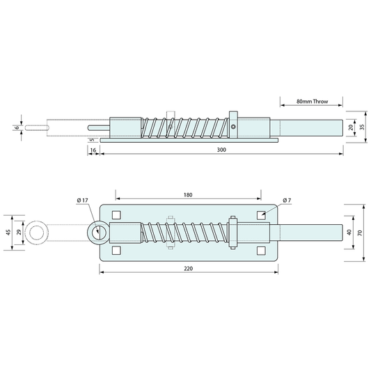 #4611 - SPRING BOLT ZINC PLATED 225MM 16MM PIN